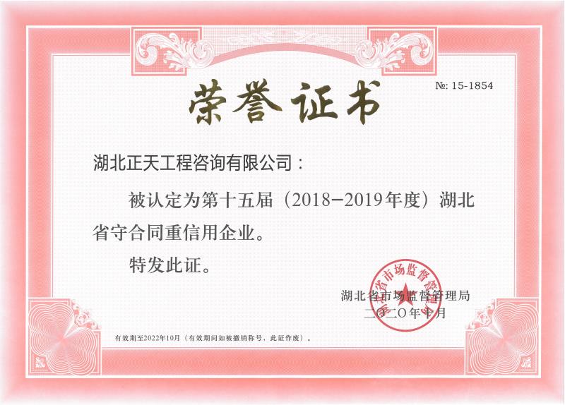 湖北省2018-2023年度守合同重信用企业