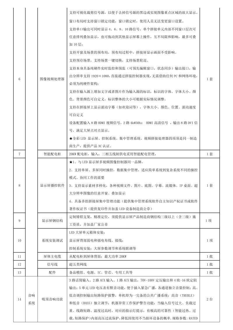 二、原采购文件中第三章采购需求项目概况“湖北省广播电视信息网络股份有限米兰体育平台官方网站-米兰(中国) 宜昌分米兰体育平台官方网站-米兰(中国) 多功能会议室大屏显示系统建设运维项目位于湖北广电宜昌分米兰体育平台官方网站-米兰(中国) 办公楼二楼,主要包括宜昌广电多功能会议室大屏显示系统、音响系统、UPS电源、视频会议系统等相关设施设备集成。”变更为 “湖北省广播电视信息网络股份有限米兰体育平台官方网站-米兰(中国) 宜昌分米兰体育平台官方网站-米兰(中国) 多功能会议室大屏显示系统建设运维项目位于湖北广电宜昌分米兰体育平台官方网站-米兰(中国) 办公楼二楼,主要包括宜昌广电多功能会议室大屏显示系统、音响系统、UPS电源、机房恒温恒湿系统等相关设施设备集成。”采购需求中视频会议系统均删除并变更为机房恒温恒湿系统。