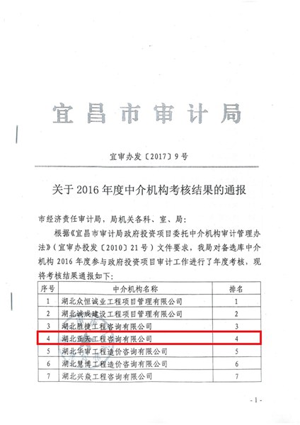 2017年度宜昌市先进造价咨询(招标…