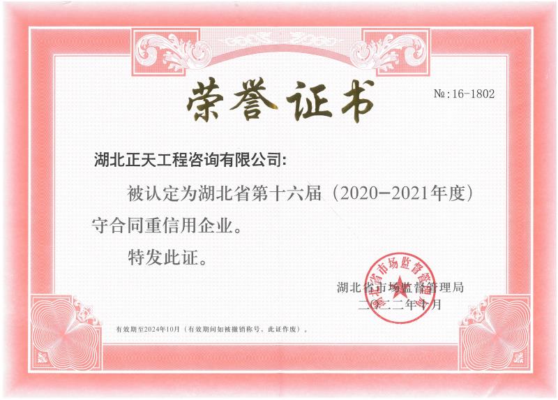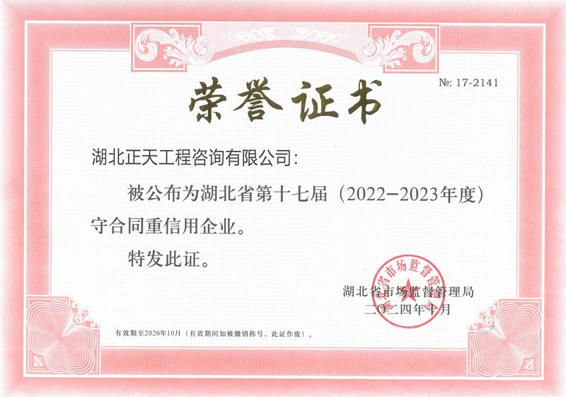 湖北省2018-2023年度守合同重信用企业